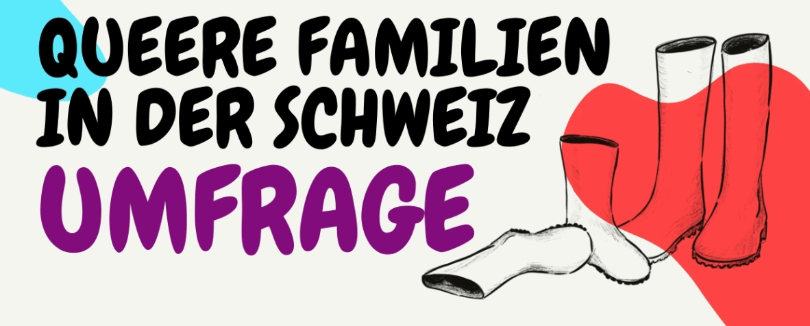 Mitmachen können alle queeren Eltern, Regenbogenfamilien und LGBTQIA+ Personen mit Kinderwunsch über 18 Jahren. Die Ergebnisse werden in einem Forschungsbericht veröffentlicht und dienen dazu, die Diskriminierung von queeren Familien abzubauen. Hier gelangt ihr zur Umfrage. Die Umfrage ist anonym und dauert je nach Familienkonstellation zwischen 15 und 30 Minuten. Sie ist auf Deutsch, Französisch, Italienisch und Englisch verfügbar.